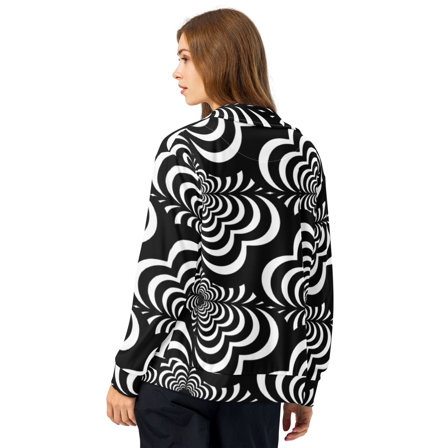 Stand out with confidence in the Zebra Love™ elegant track jacket with the Planet Heart logo. This is artist Lehavi's signature design for those who are not afraid to show their unique stripes! Stay warm and trendy with this zip-up track jacket—perfect for workouts, outdoor activities, and everyday wear. It’s made from recycled materials, has brushed fleece inside for warmth, and zippered pockets.